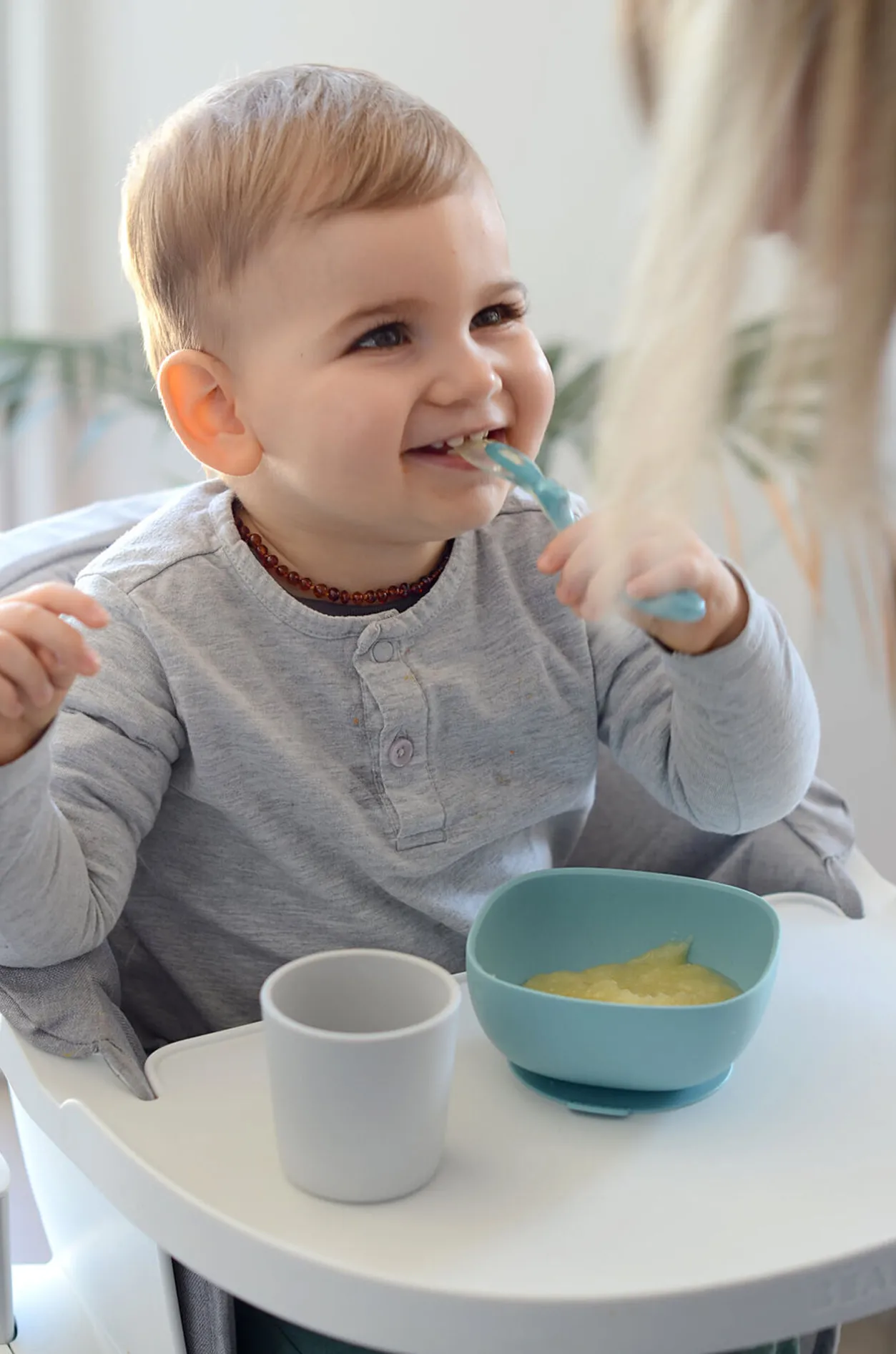 - Coffret Repas Silicone Compose D’Une Assiette Et D’Un Bol Avec Ventouse, D’Un Verre Et D’Une Cuillere 2Eme Age Silicone