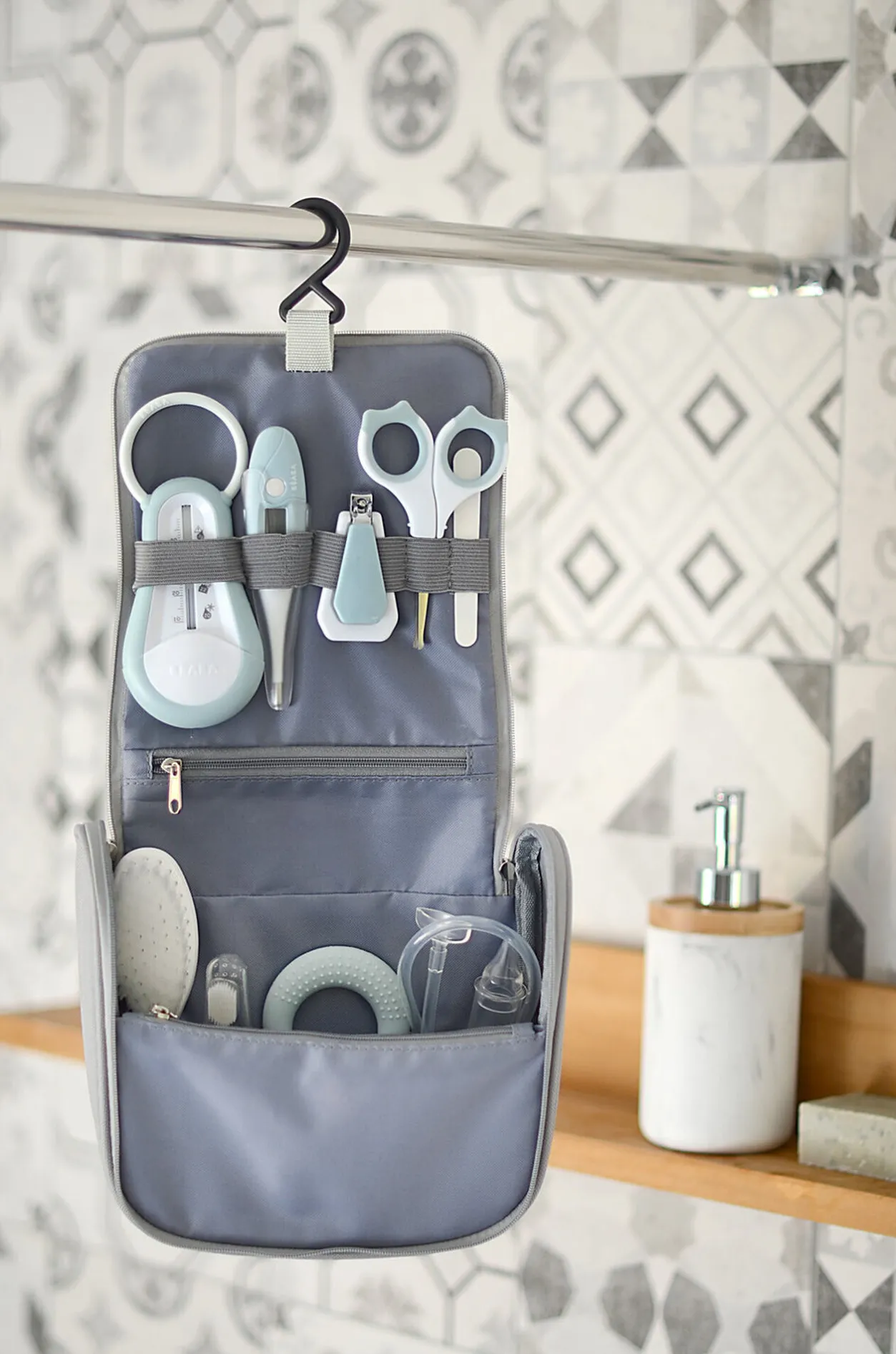 - Neuf Accessoires Indispensables Pour La Toilette Et Les Soins De Bébé : Thermometre De Bain, Thermometre Digital, Ciseaux, Coupe-Ongles, Brosse A Cheveux, Anneau De Dentition, Masseur De Gencives, Mouche Bébé Manuel, Lime A Ongles