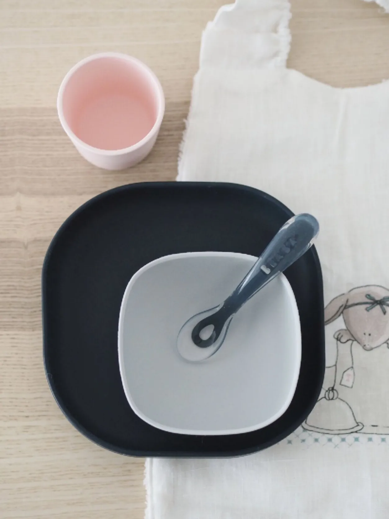 - Coffret Repas Silicone Compose D’Une Assiette Et D’Un Bol Avec Ventouse, D’Un Verre Et D’Une Cuillere 2Eme Age Silicone